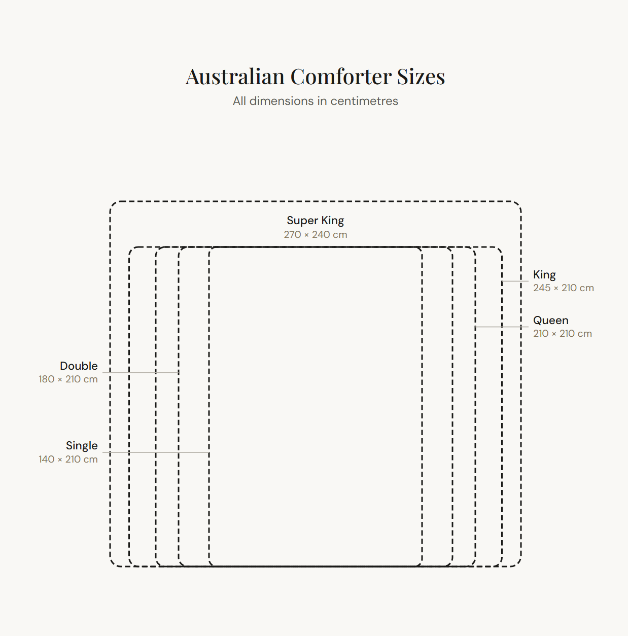 If you've ever stood in a bedding aisle staring at a label that says "Queen" and wondered whether it'll actually fit your bed, you're not alone. Comforter sizing in Australia - whether you call it a doona, quilt, or duvet - follows its own standard that doesn't match the US, UK, or Europe. Here's a breakdown of what each size actually measures.