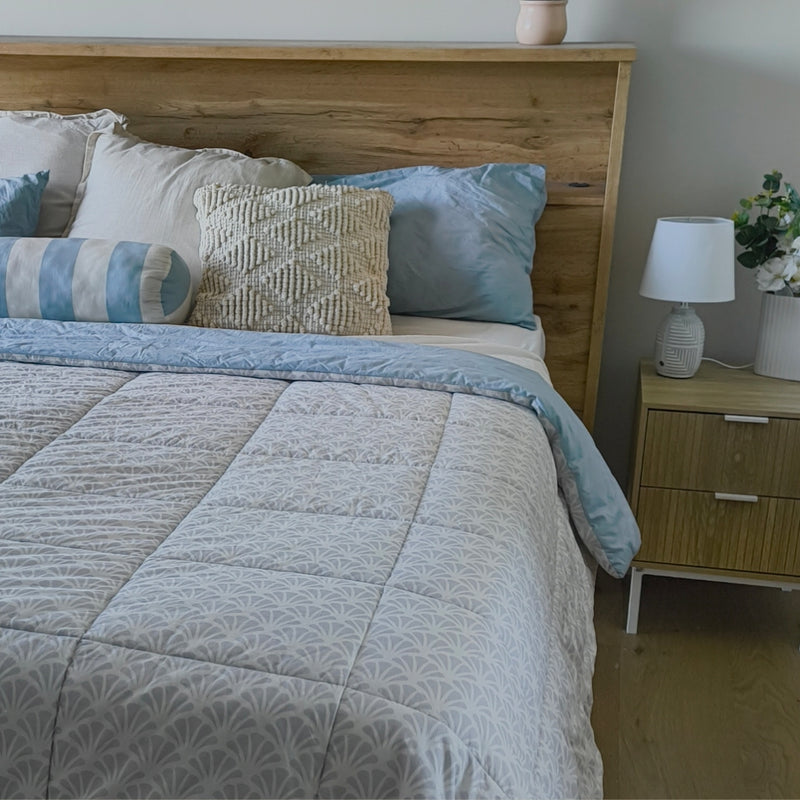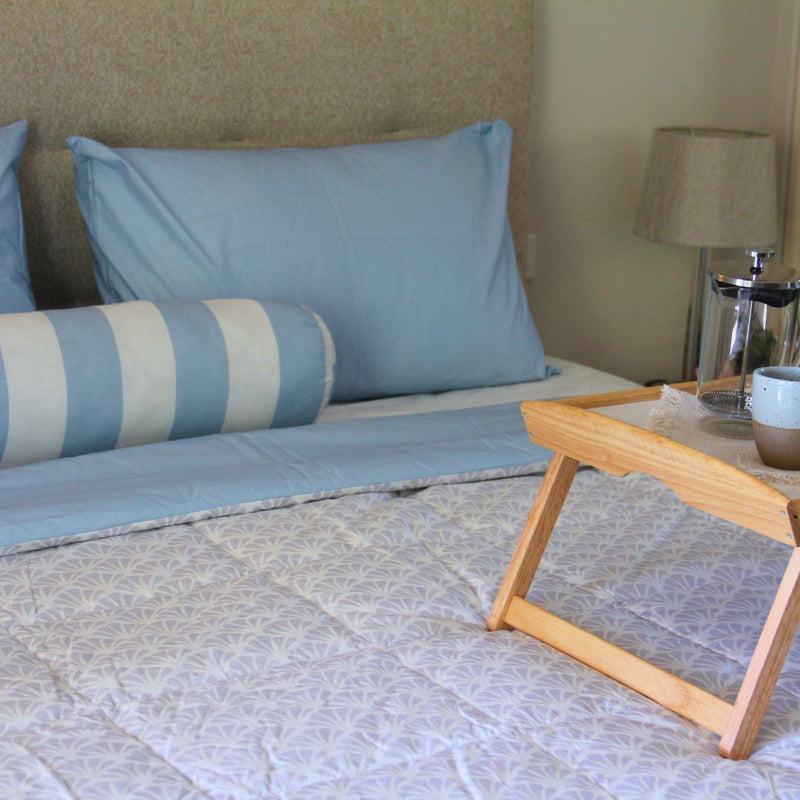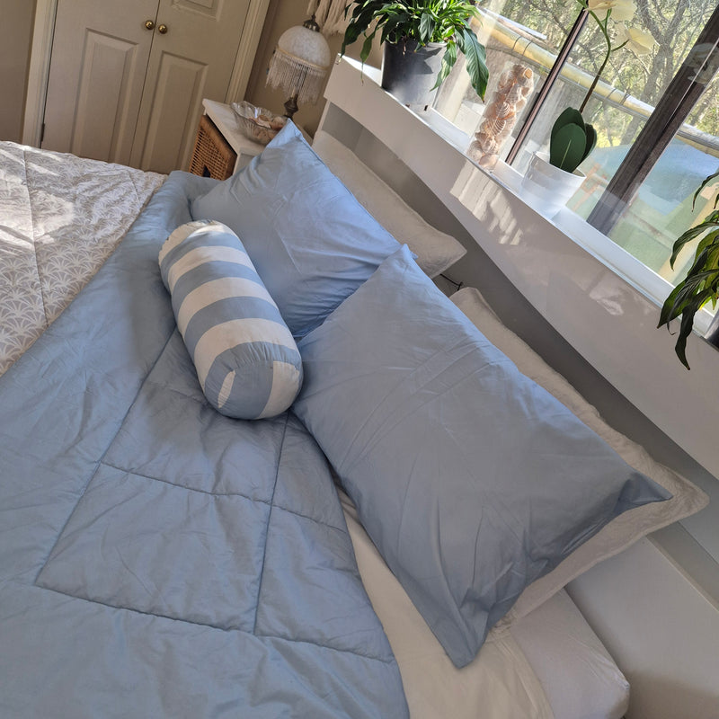 If you're looking for an easy start? Our pure cotton 'Beach House' comforter set is a blue and white striped 5-piece ensemble that transforms your bedroom out of the box.